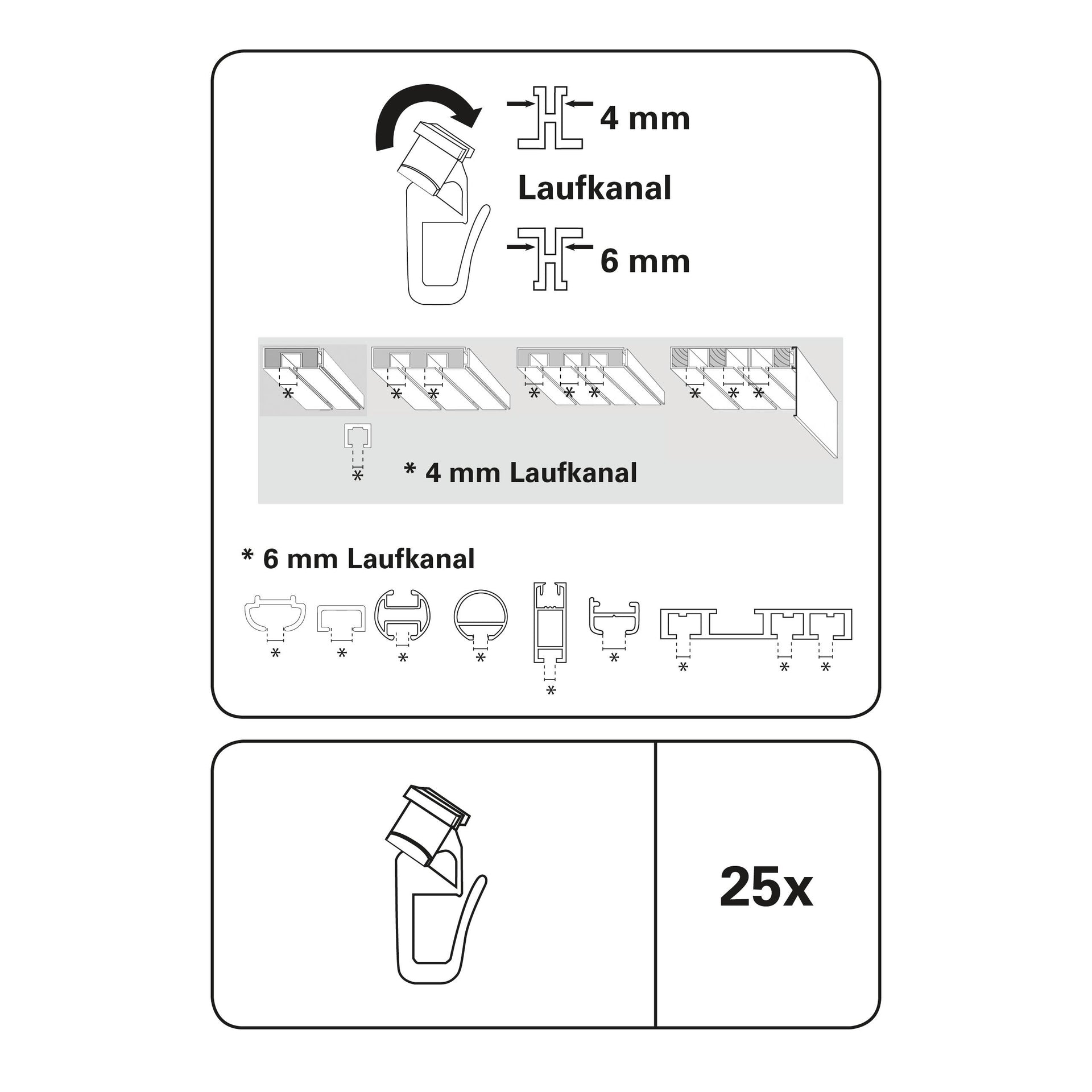 Plastic, cap pivotant, pentru șinele de perdea și profilele de culisare cu canal de culisare de 4 sau 6 mm.25x buc