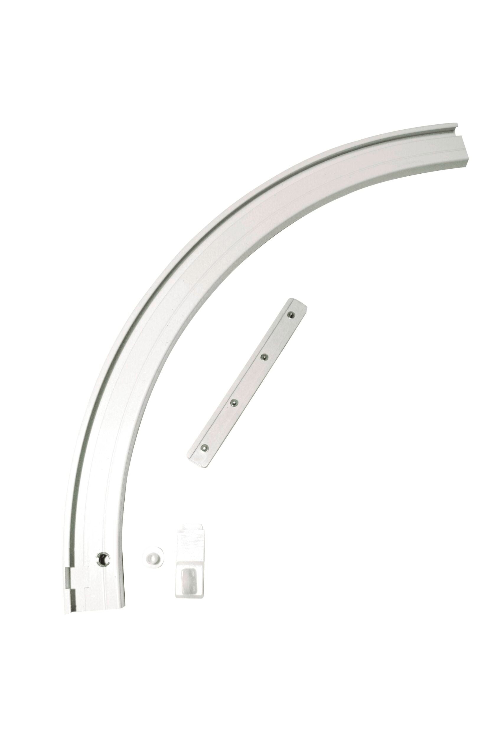 Aluminiu, vopsit în câmp electrostatic, unghi de 90°, include element de îmbinare şi opritor de capăt, cu decupaj, pentru şine din aluminiu cu 1, 2 sau 3 canale de culisare.