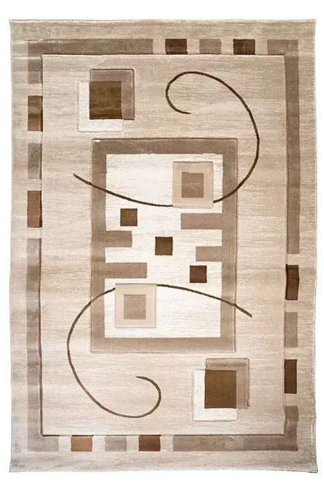 Covorul Zinat redefinește eleganța într-un mod geometric, aducând un amestec rafinat de stil și funcționalitate în orice încăpere. Cu un model geometric distinct, în tonuri neutre de bej și brun, acest covor devine o piesă centrală în designul interior, oferind un echilibru armonios de formă și culoare.