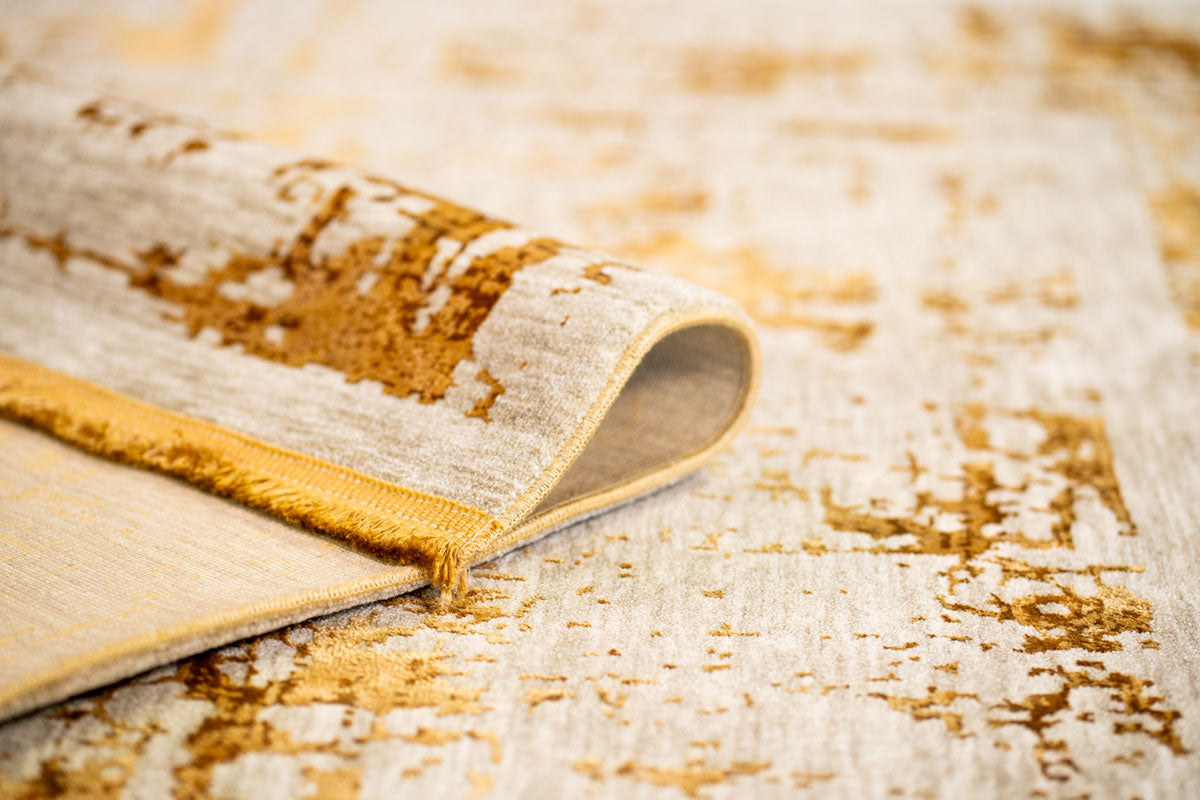 Pierre Cardin MONTREAL Hugo este un covor ce emană energie și caracter, fiind alegerea ideală pentru interioare moderne care doresc să iasă din anonimat. Cu un design abstract spectaculos, acest covor reinterpretează eleganța printr-o paletă cromatică intensă și expresivă. Tonurile de galben auriu și gri se combină armonios pentru a crea o piesă decorativă dramatică, dar echilibrată.