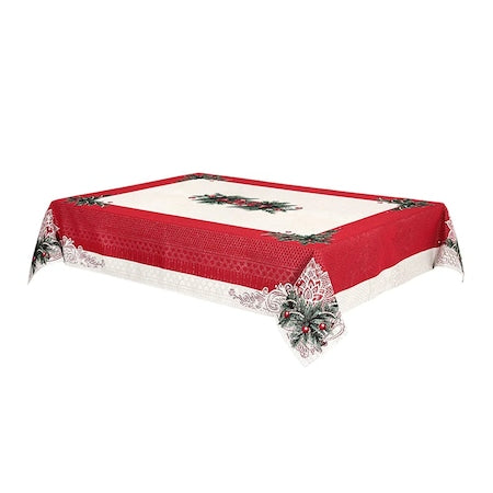 Denumire produs: Față de masă Merry Christmas, model festiv de Crăciun, bumbac, alb și roșu, cu crengi de brad;