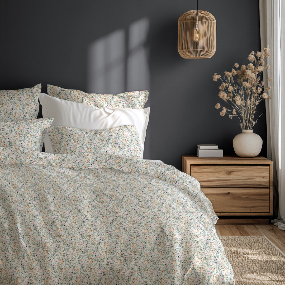 Lenjeria de pat FIORI este un model floral proaspăt cu flori mici și petale în diferite culori pe un fundal alb. O viziune blândă și frumoasă pentru dormitorul tău. Cearșaful de pilotă are o deschidere pe toată lățimea, închiderea fiind cu nasturi. Fețele de pernă se închid pe latura scurtă. Este o lenjerie foarte moale datorită calității bumbacului ranforce. Nu se va micșora cu mai mult de 4% dacă este întreținut corespunzător. Spălați și călcați doar la temperatura indicată pe ambalaj pentru o prospețime a culorilor îndelungată și pentru protejarea calității lenjeriei de pat. Fabricat în Bulgaria. Material: 100% bumbac ranforceMărime: Cearșaf de pilotă: 150/215 cm – 1 bucată Fața de pernă: 50/70 cm – 1 bucată ** Fotografiile sunt orientative. Poate varia ușor culoarea sau tonalitatea.