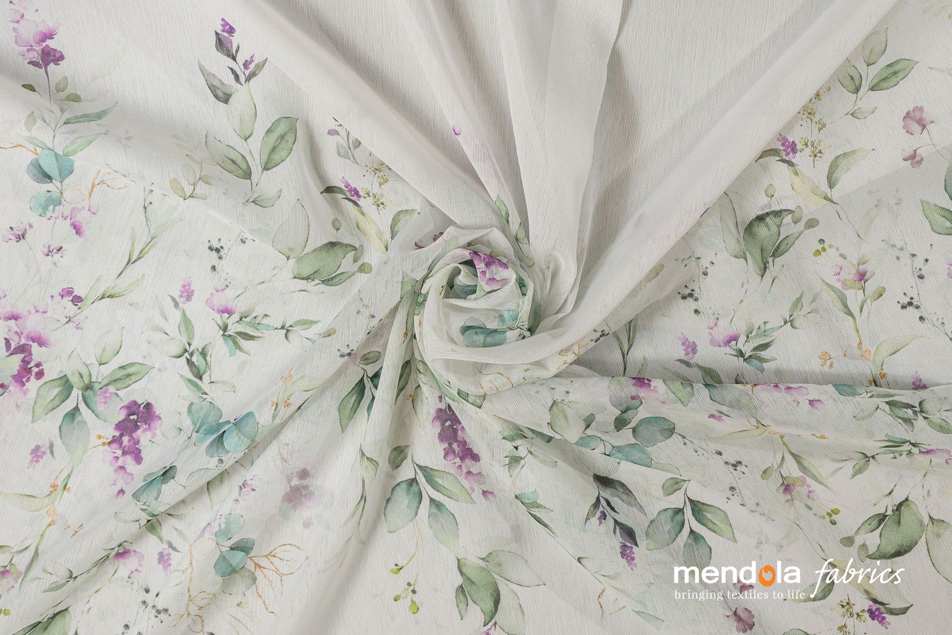 Denumire produs: Perdea Bettsy 01, voal cu model floral, verde și mov