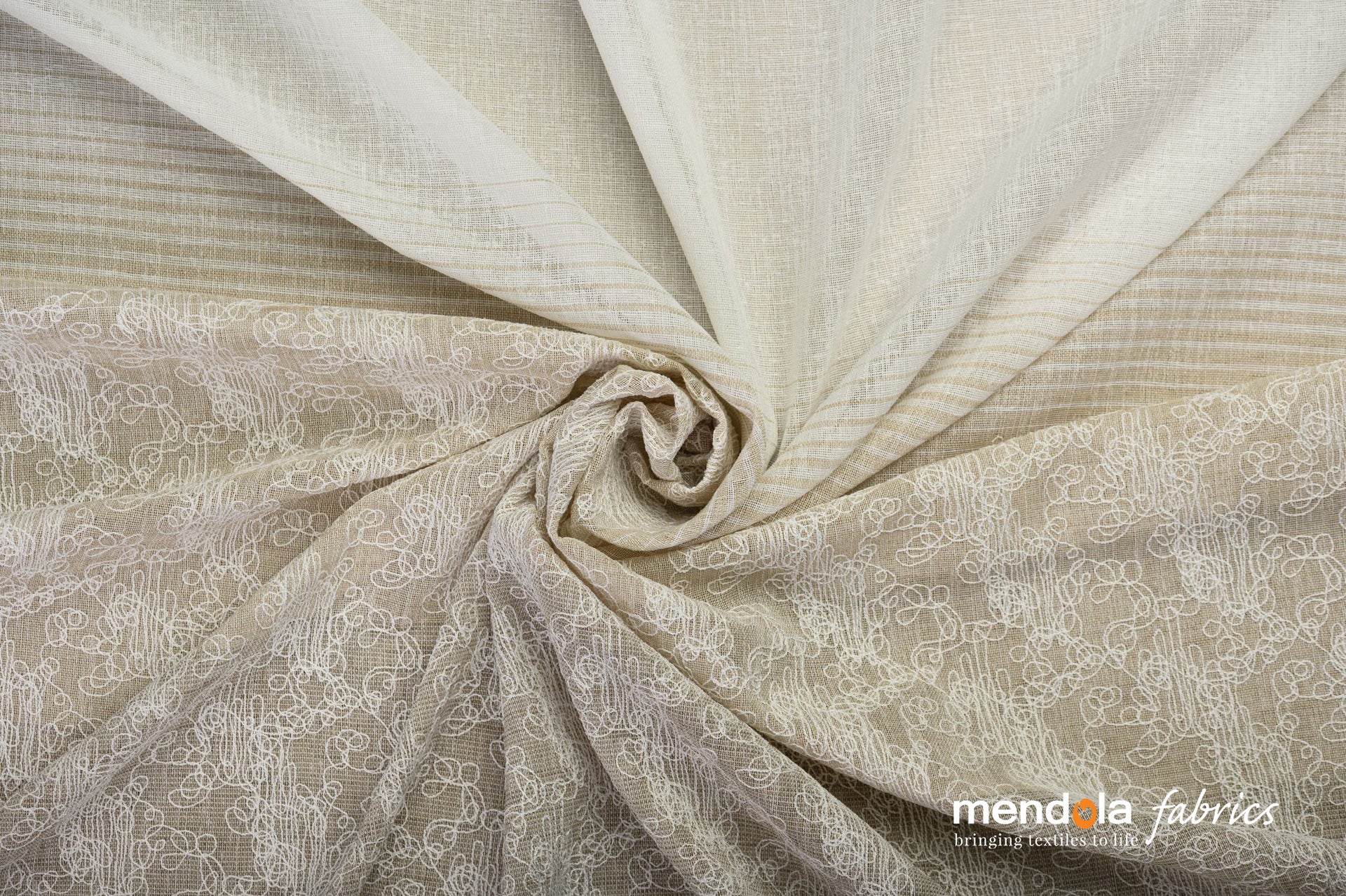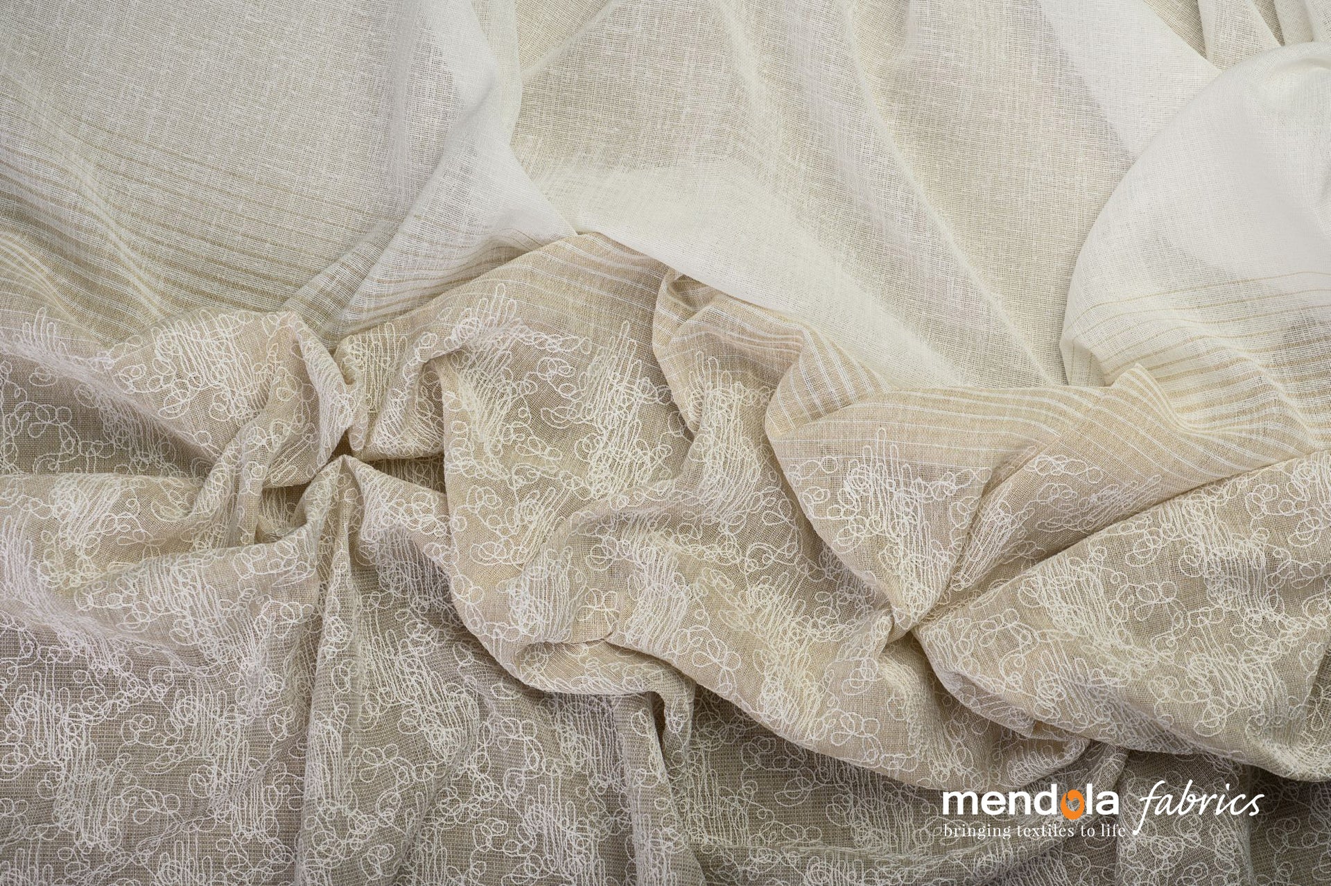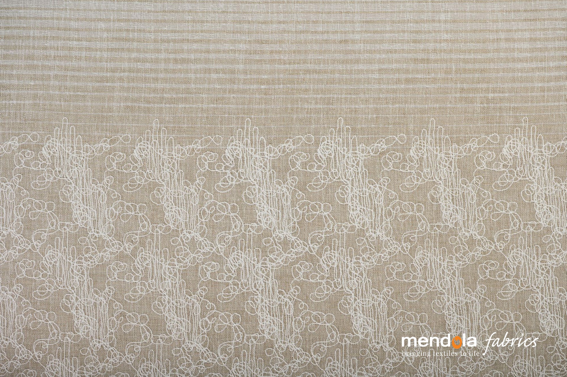 Denumire produs: Perdea Camogli 14, crem, model cu broderie abstractă aplicată pe partea de jos a țesăturii;
