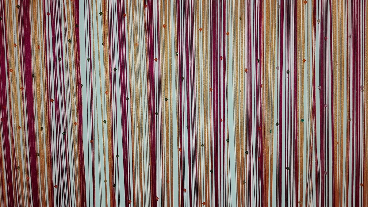 Denumire produs: Perdea franjuri în nuanțe de galben, portocaliu și roșu, cu biluțe multicolore, 1,2 m Lățime x 2,2 m Înălțime;