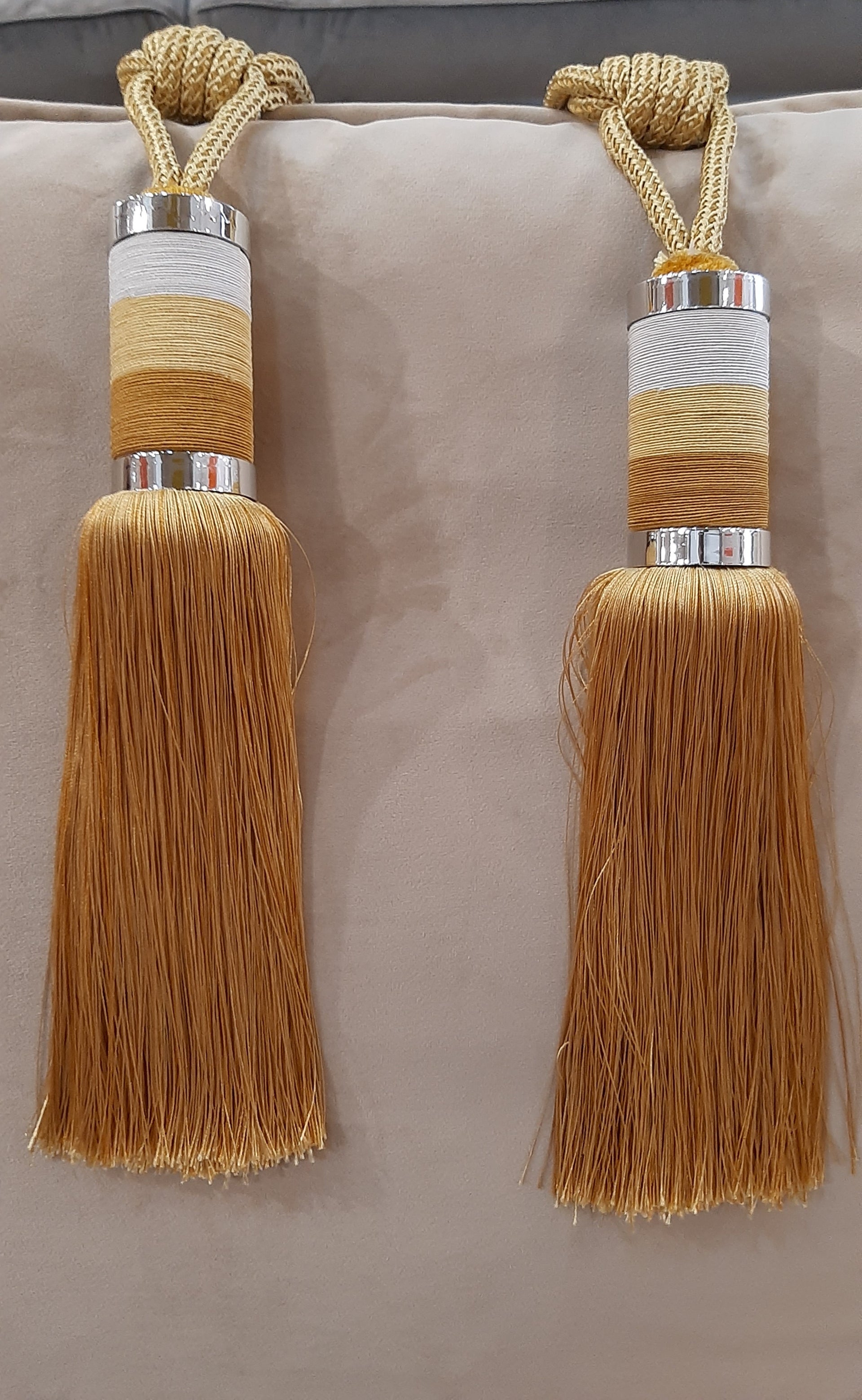 The Gold tassel has a special design, in gradients and a Wonderful color palette . The shades of yellow and cream are warm, wonderful and cheerful, having a relaxing effect.