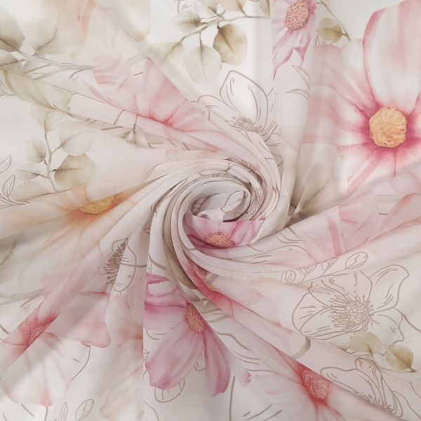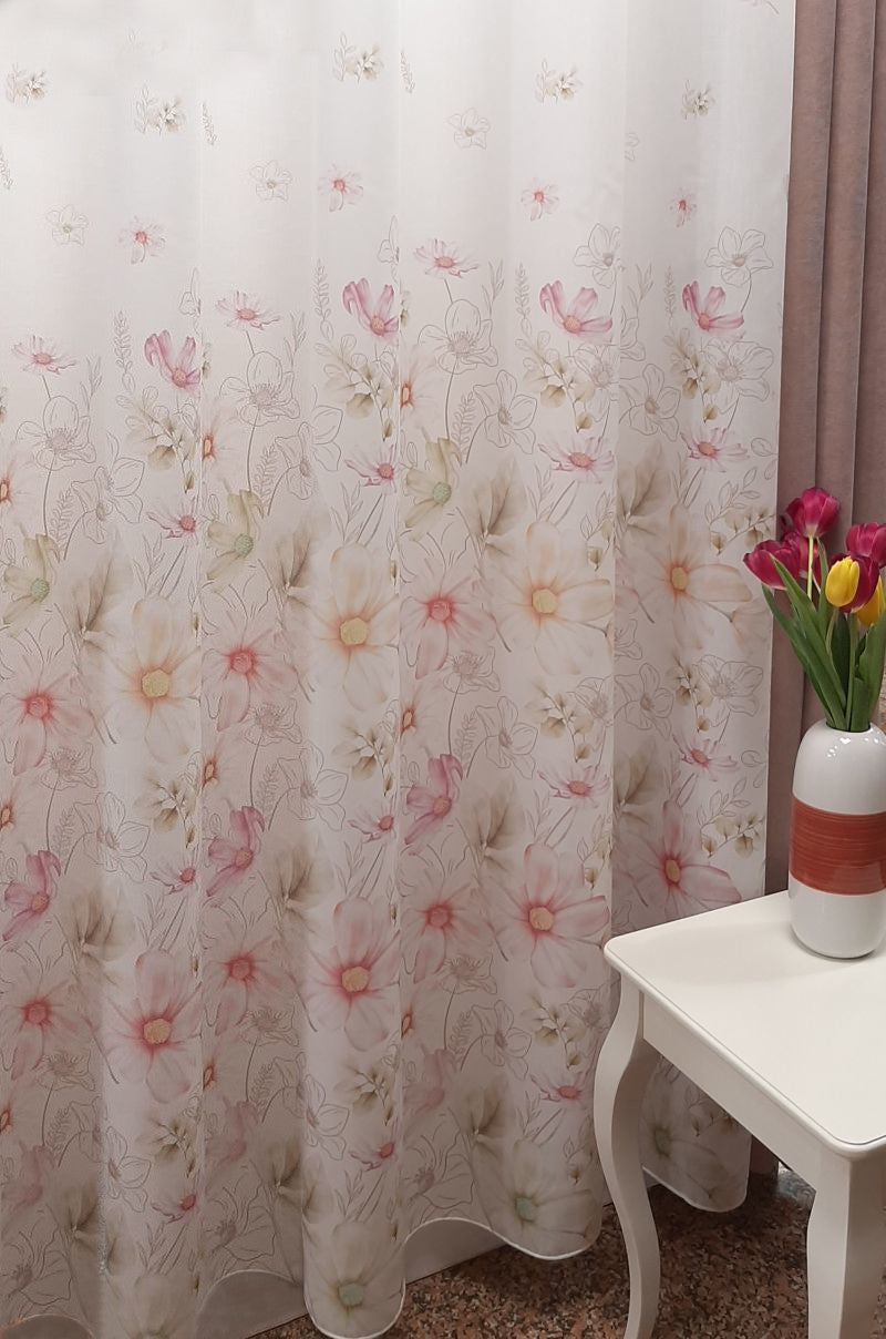 - Product name: Curtain 534 CVK 4702/01, linen, white background with pink floral pattern ;