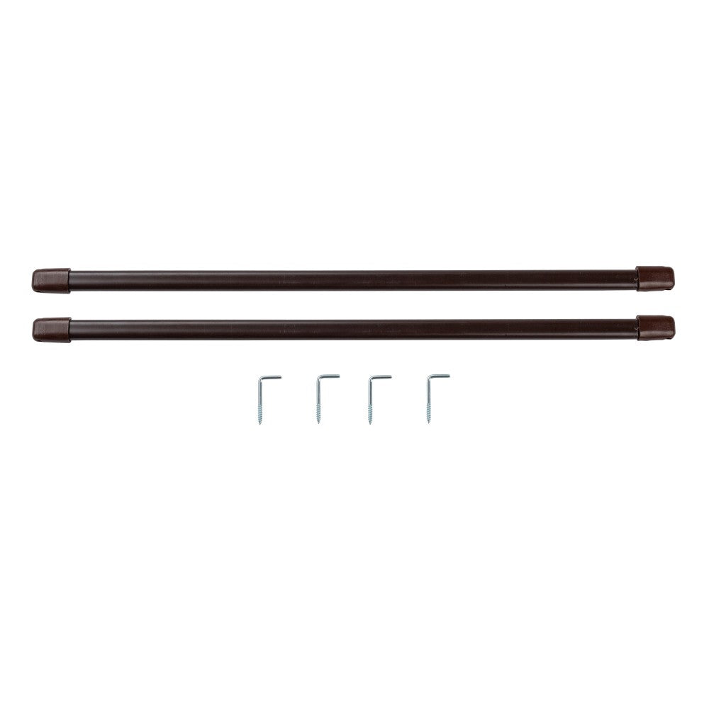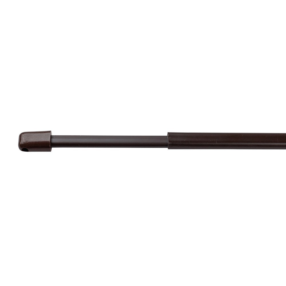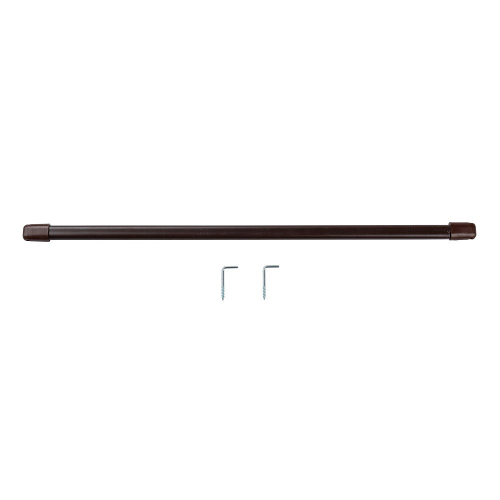 The brown curtain rod, with the help of self-adhesive hooks, attaches to the window and firmly supports the curtain of your choice.
