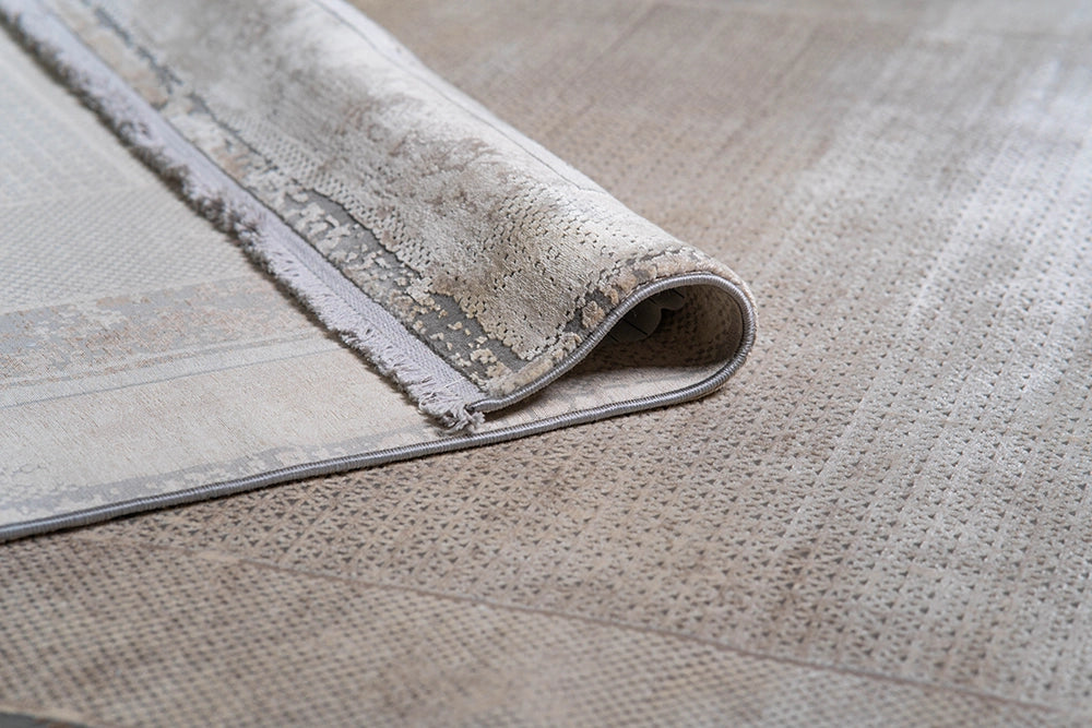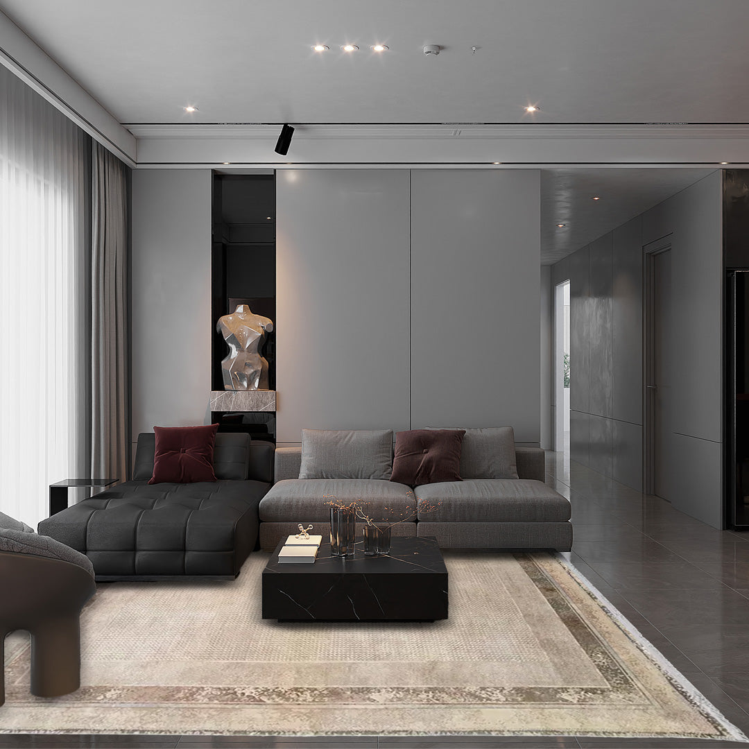 The Talha rug redefines the concept of elegance through a geometric perimeter pattern and a neutral color palette, thus creating a centerpiece in interior design.