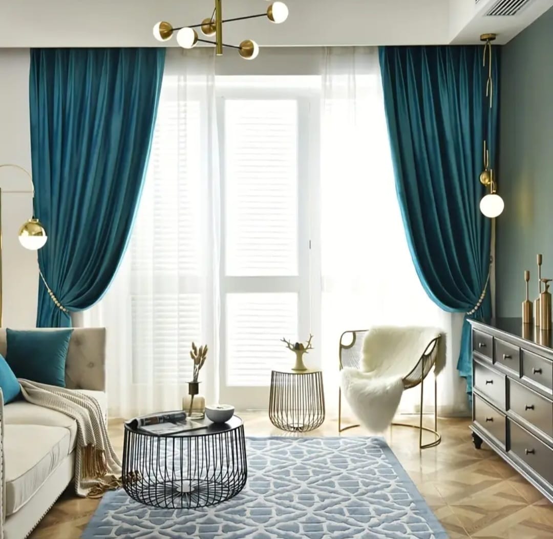 The Velvet 809, turquoise, silk velvet curtain is extremely elegant and beautiful. The silky texture of the velvet caresses your eyes and gives a luxurious look to the room.