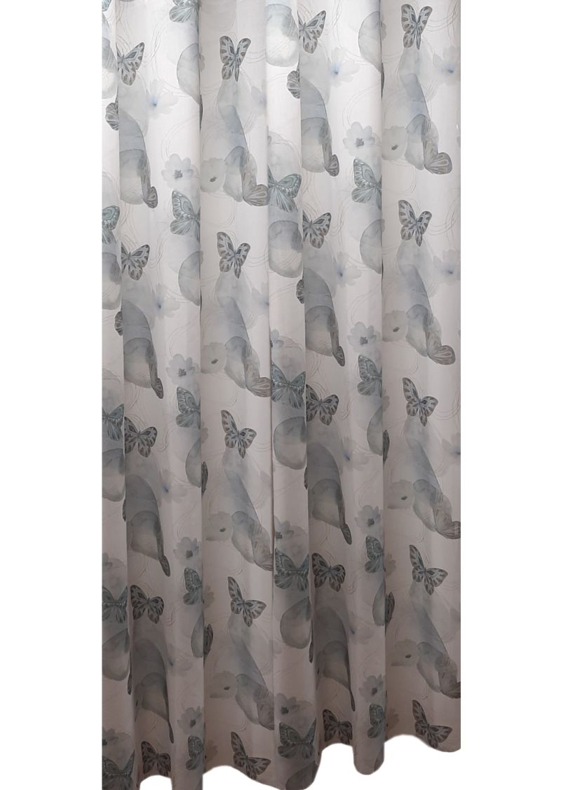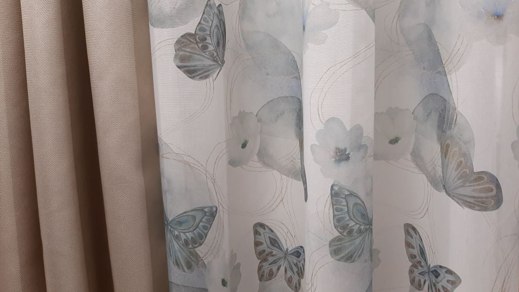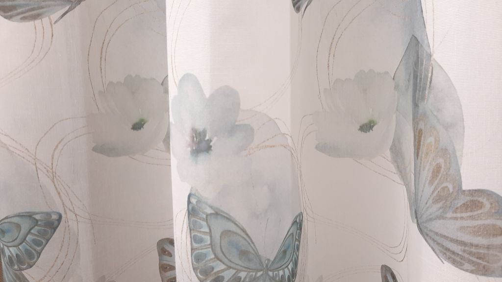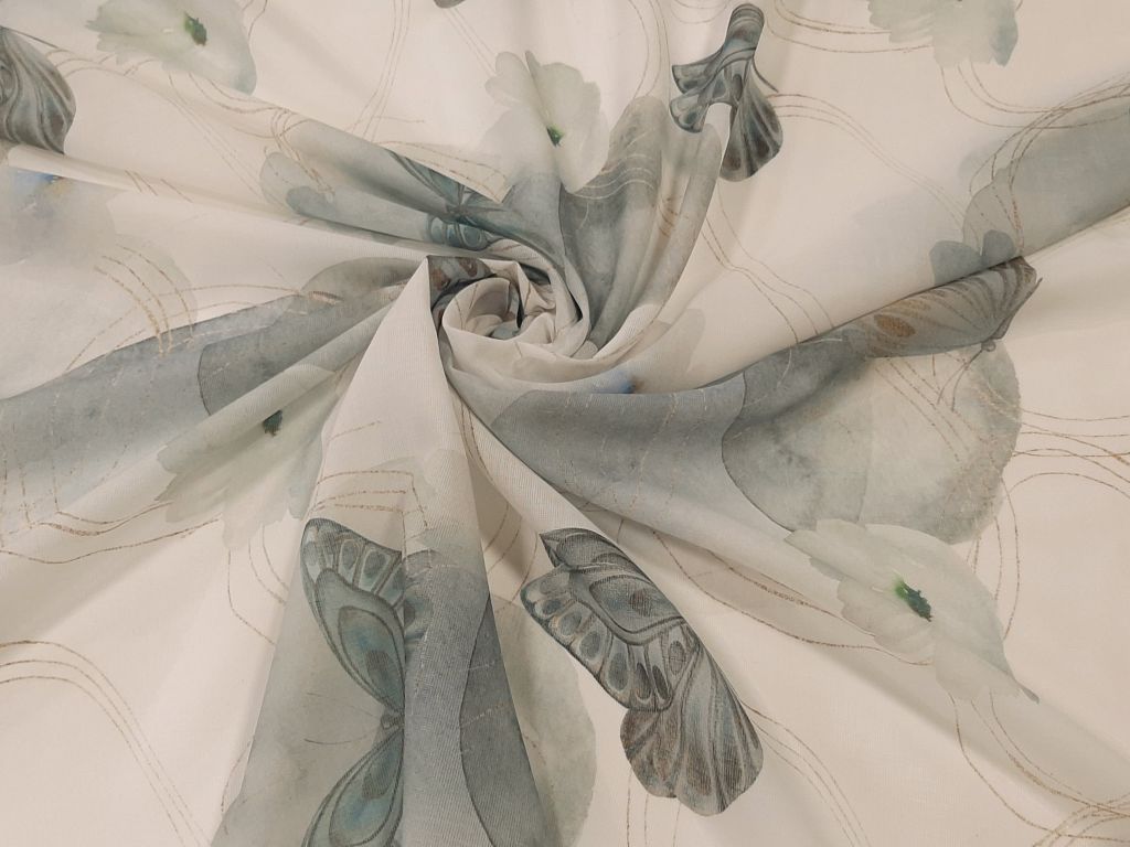 - Product name: Curtain 534 CVK 4897/01, linen, white background with green flowers and butterflies ;