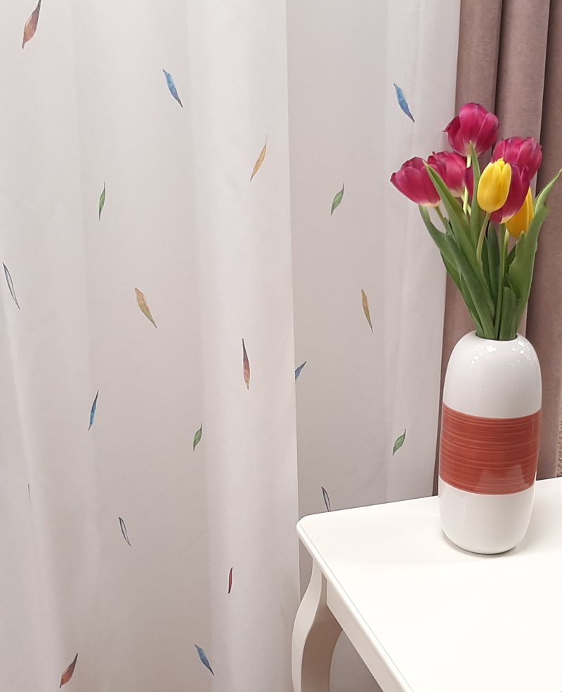 The elegance and refinement of the 534 CVK 4912/01 curtain delights the eyes and enlivens the surrounding atmosphere with its superb plant pattern.