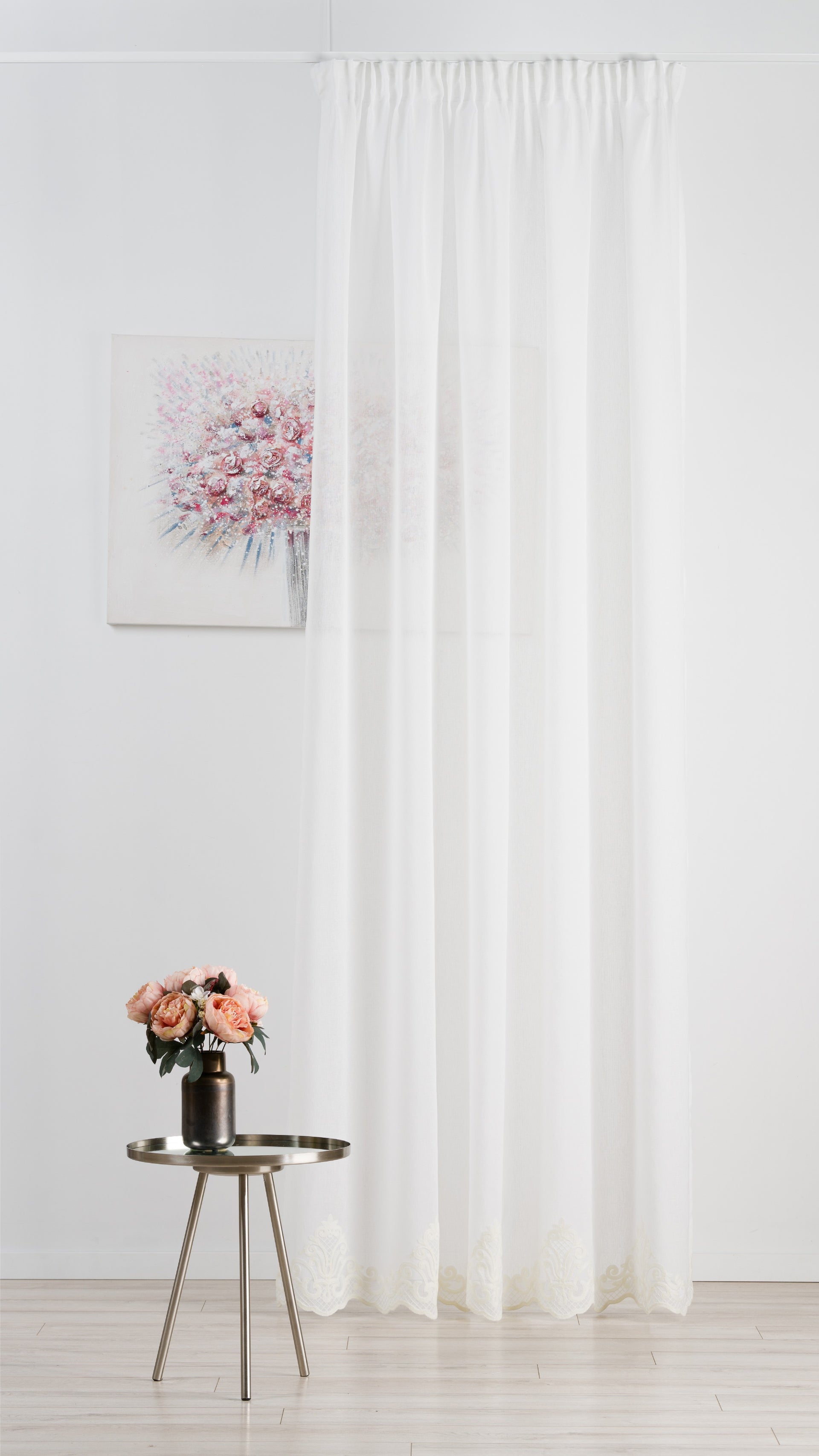 The woven embroidery, located in the lower area of the curtain, will add elegance to the room's design.