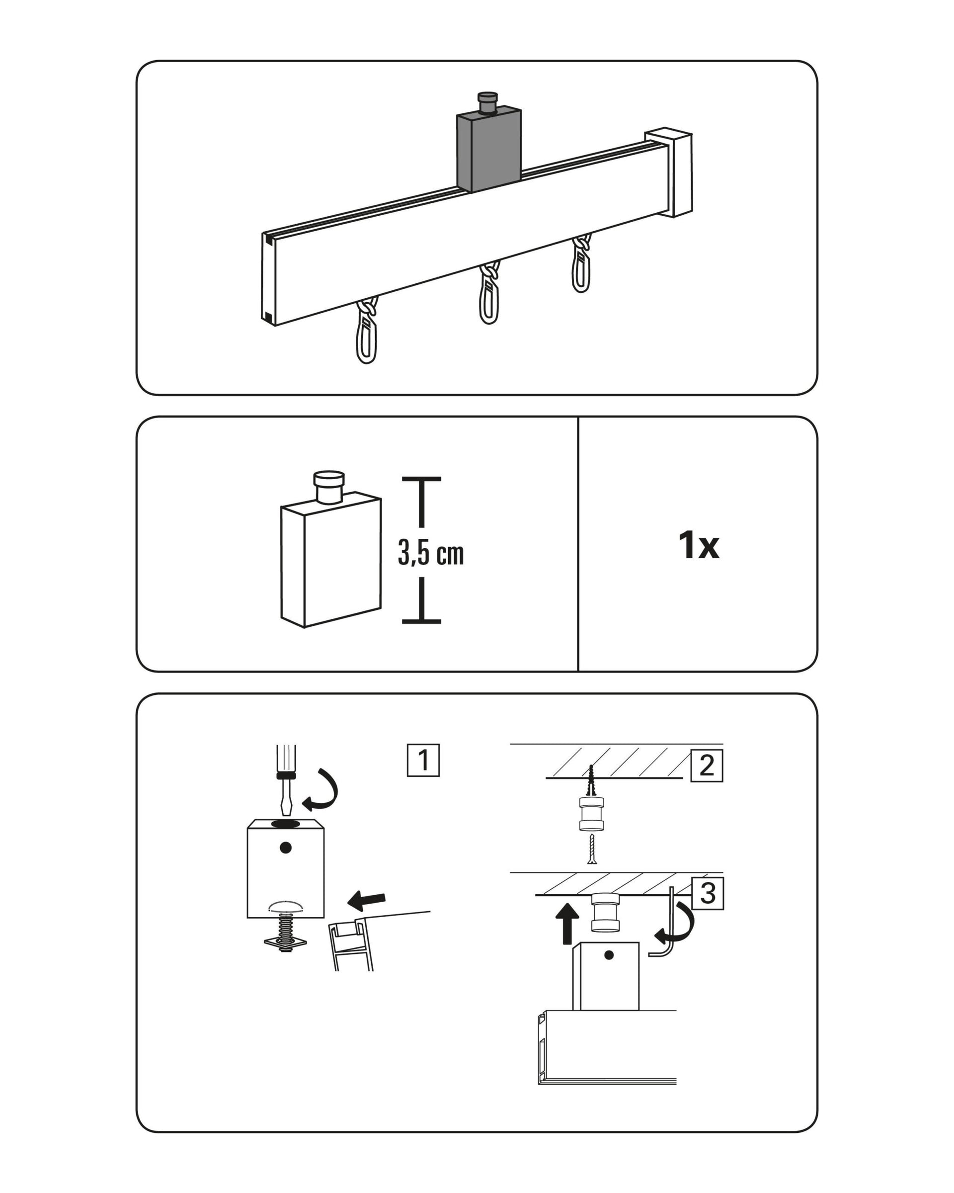 Consolă din aluminiu pentru profile de culisare din gama Luxor. Include material de fixare. Lungime de susținere (distanța față de tavan a barei)- 3,5 cm,