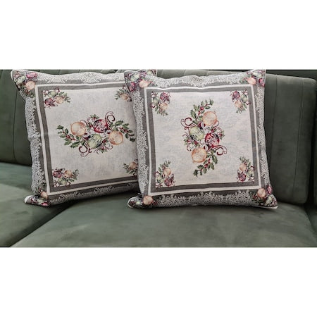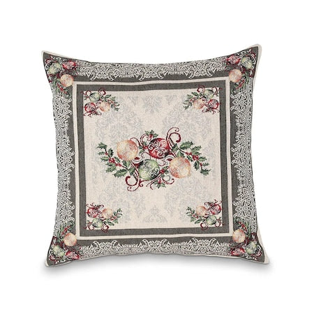 Denumire produs: Față de pernă decorativă Sweet Brown Christmas, 40 x 40 cm, bumbac, model de Crăciun, cu globulețe, argintiu și verde olive;