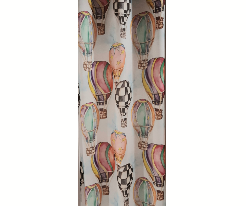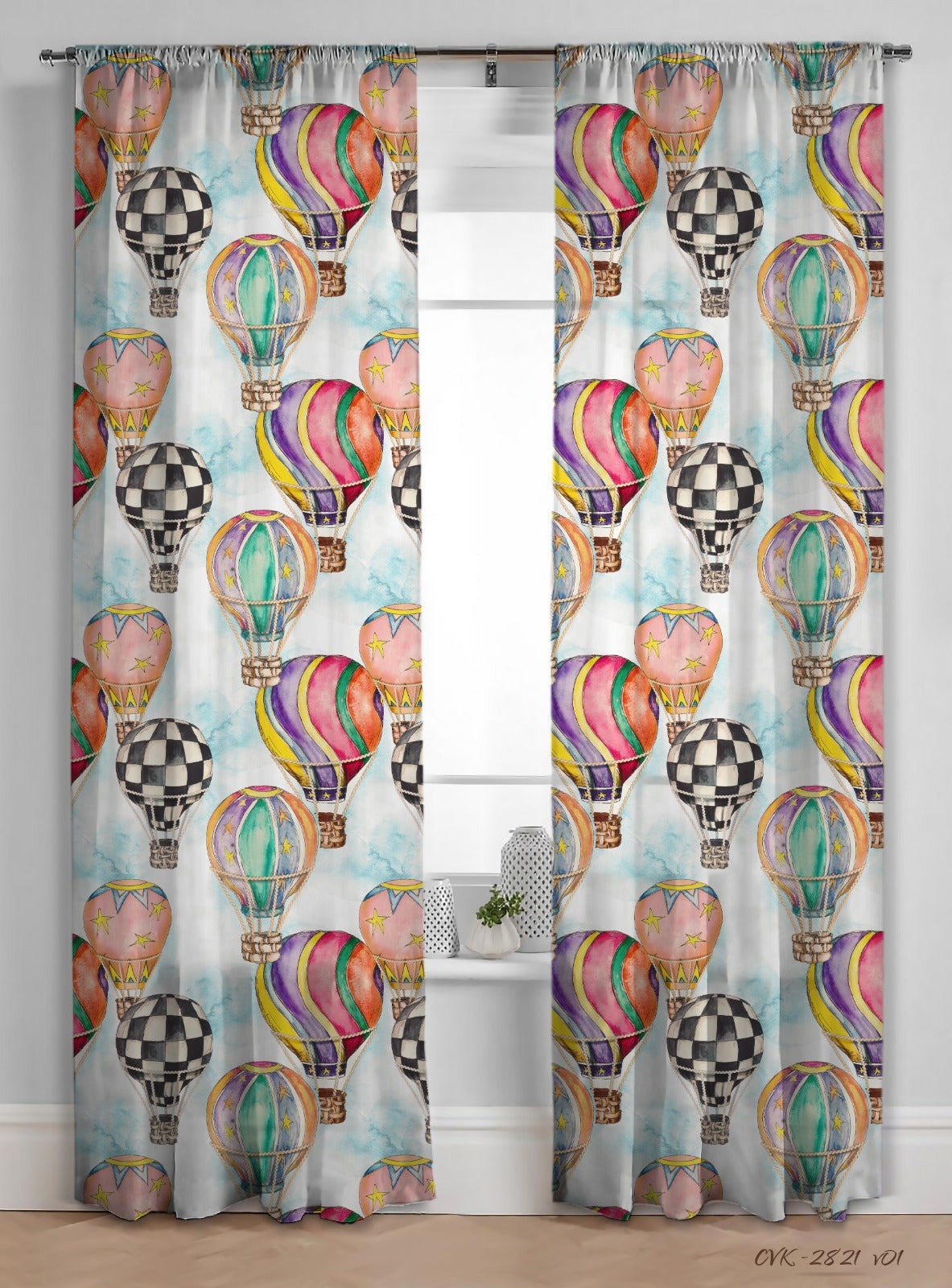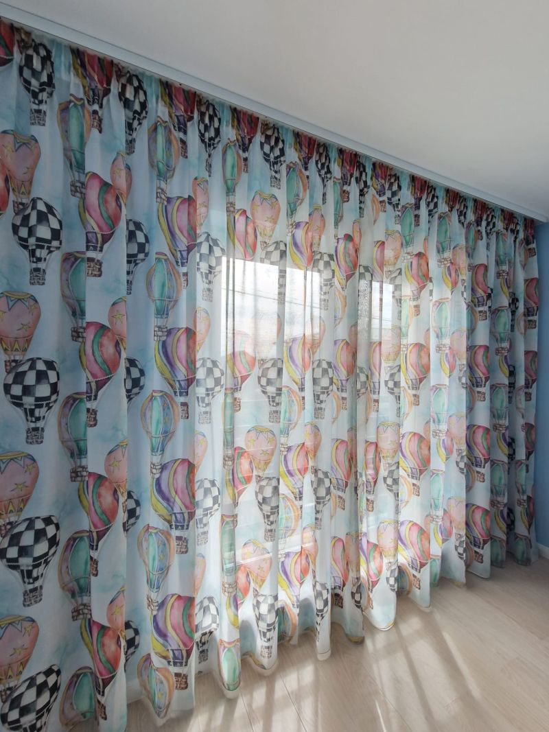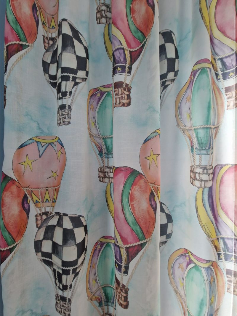 Perdea 534 CVK2821/01, din in natural, albă, imprimeu cu baloane cu aer cald, model exclusiv