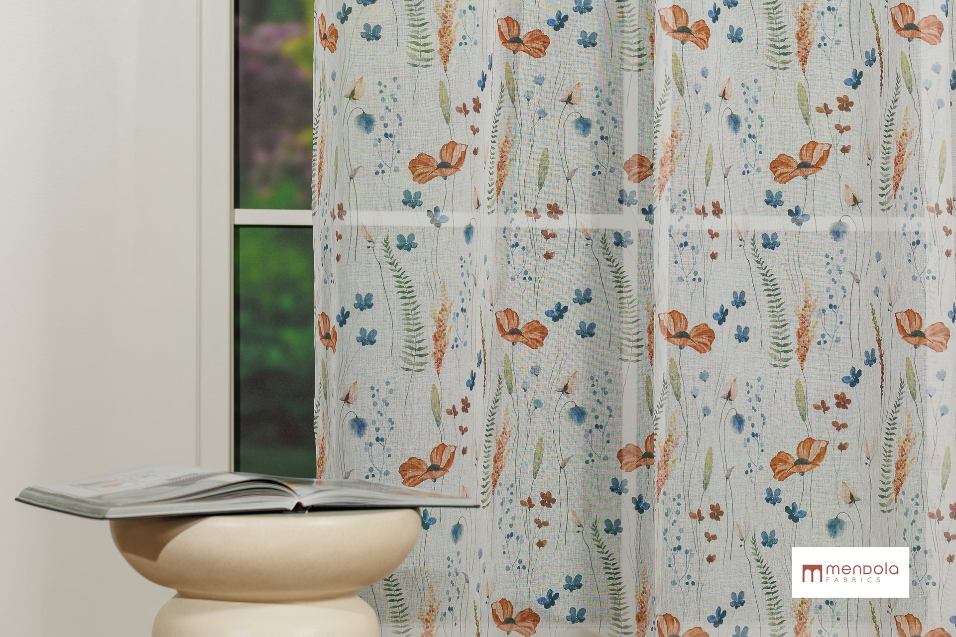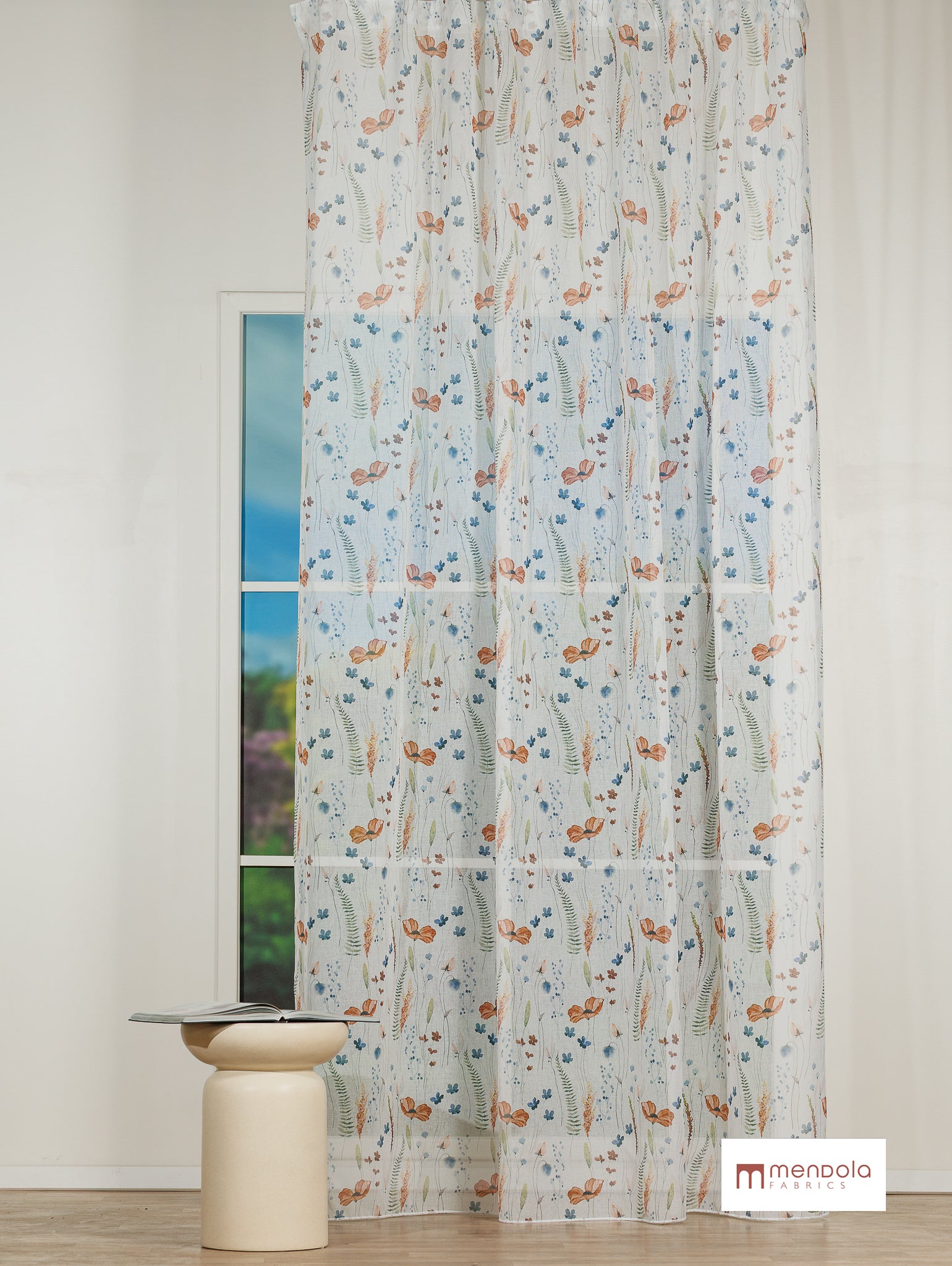 Imprimeul său floral delicat adaugă sau notă romantică rafinată, iar textura aerată permite luminii naturale să pătrundă cu finețe în încăpere.