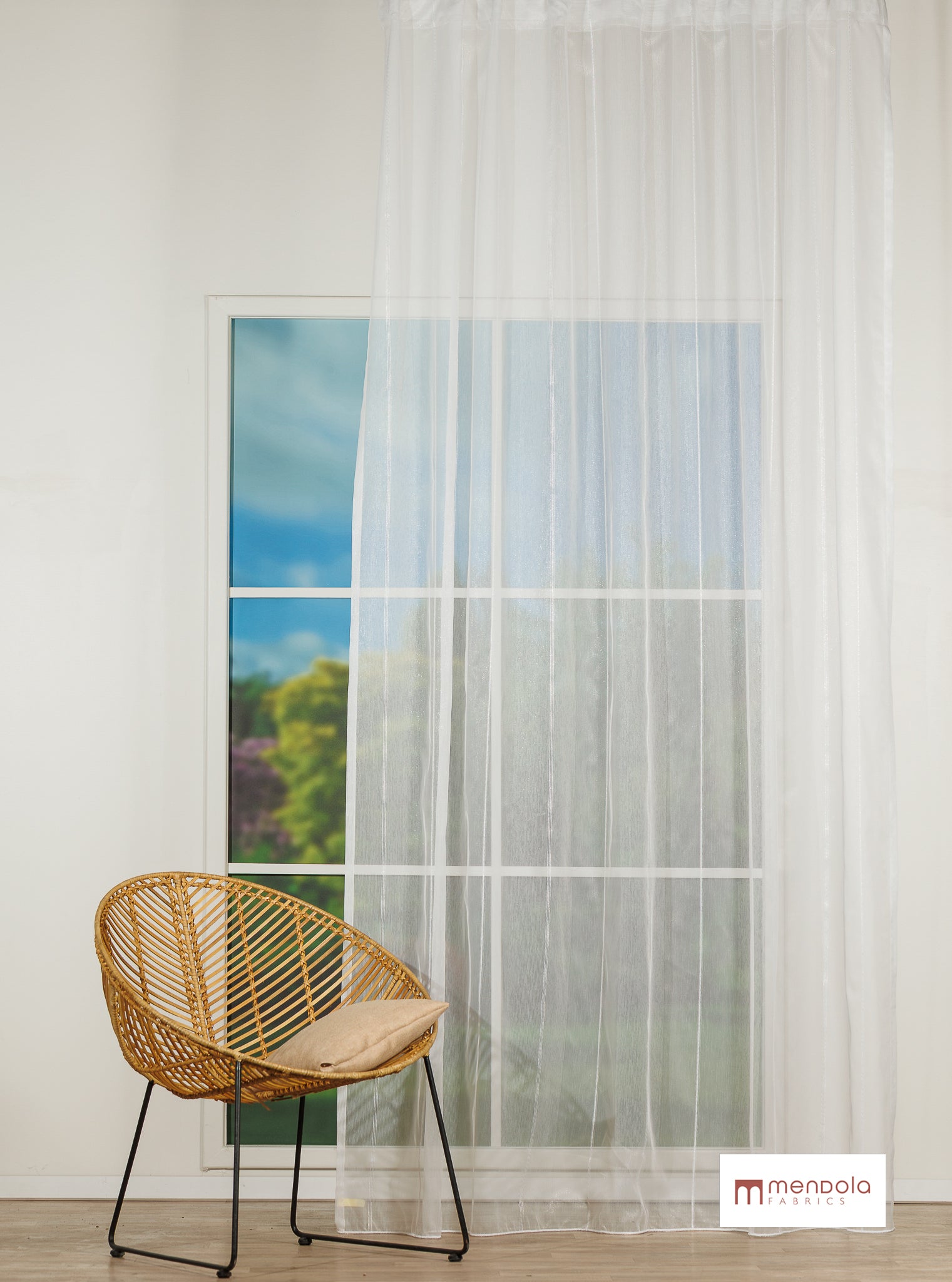 Jean este o perdea din etamină, definită de dungi verticale fine, îmbogățite subtil cu fire strălucitoare.