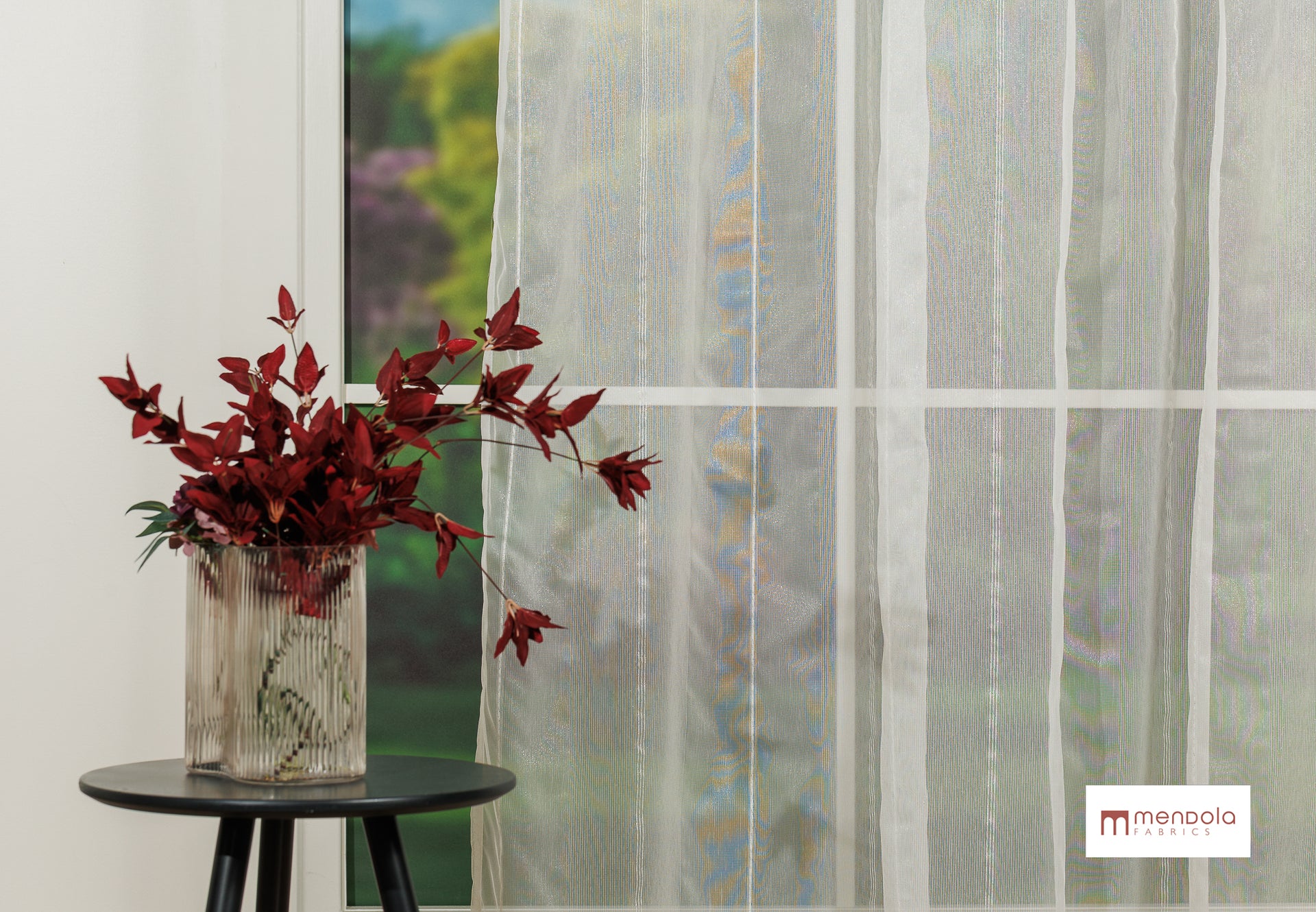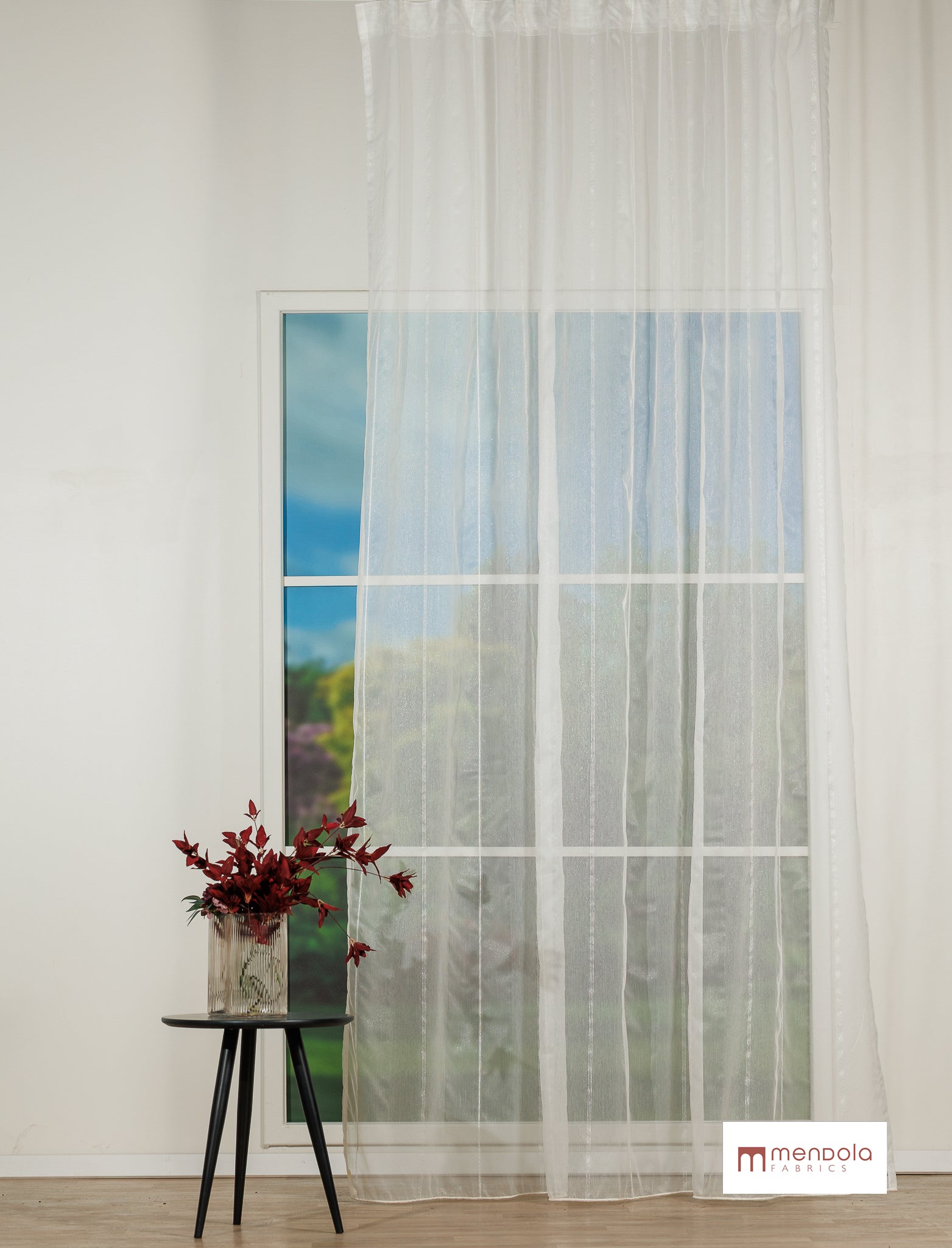 Jean este o perdea din etamină, definită de dungi verticale fine, îmbogățite subtil cu fire strălucitoare.