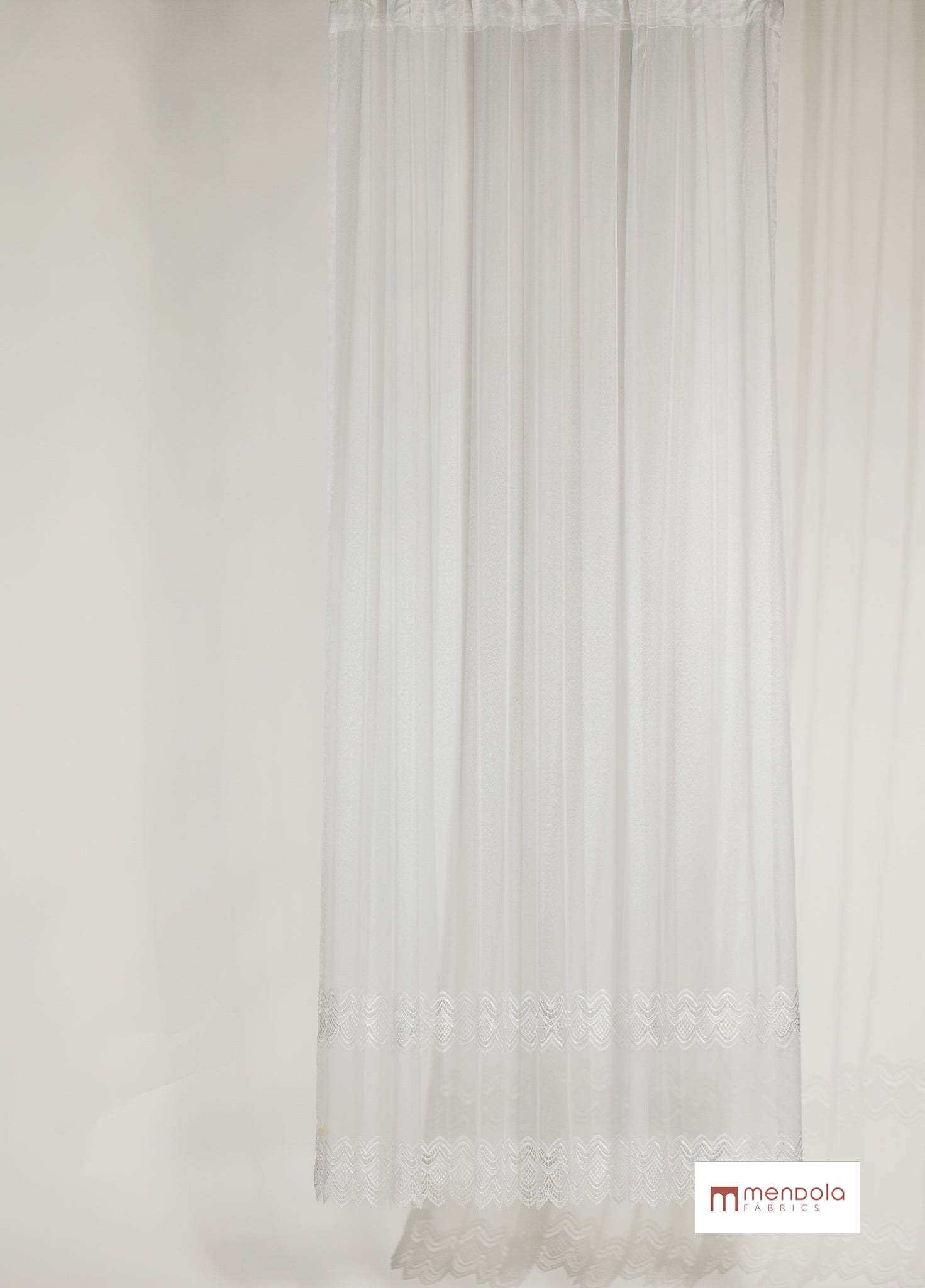 Partea superioară a țesăturii rămâne simplă și fluidă, în timp ce bordura inferioară este îmbogățită cu un model tip macramé, care creează un accent decorativ distinct.