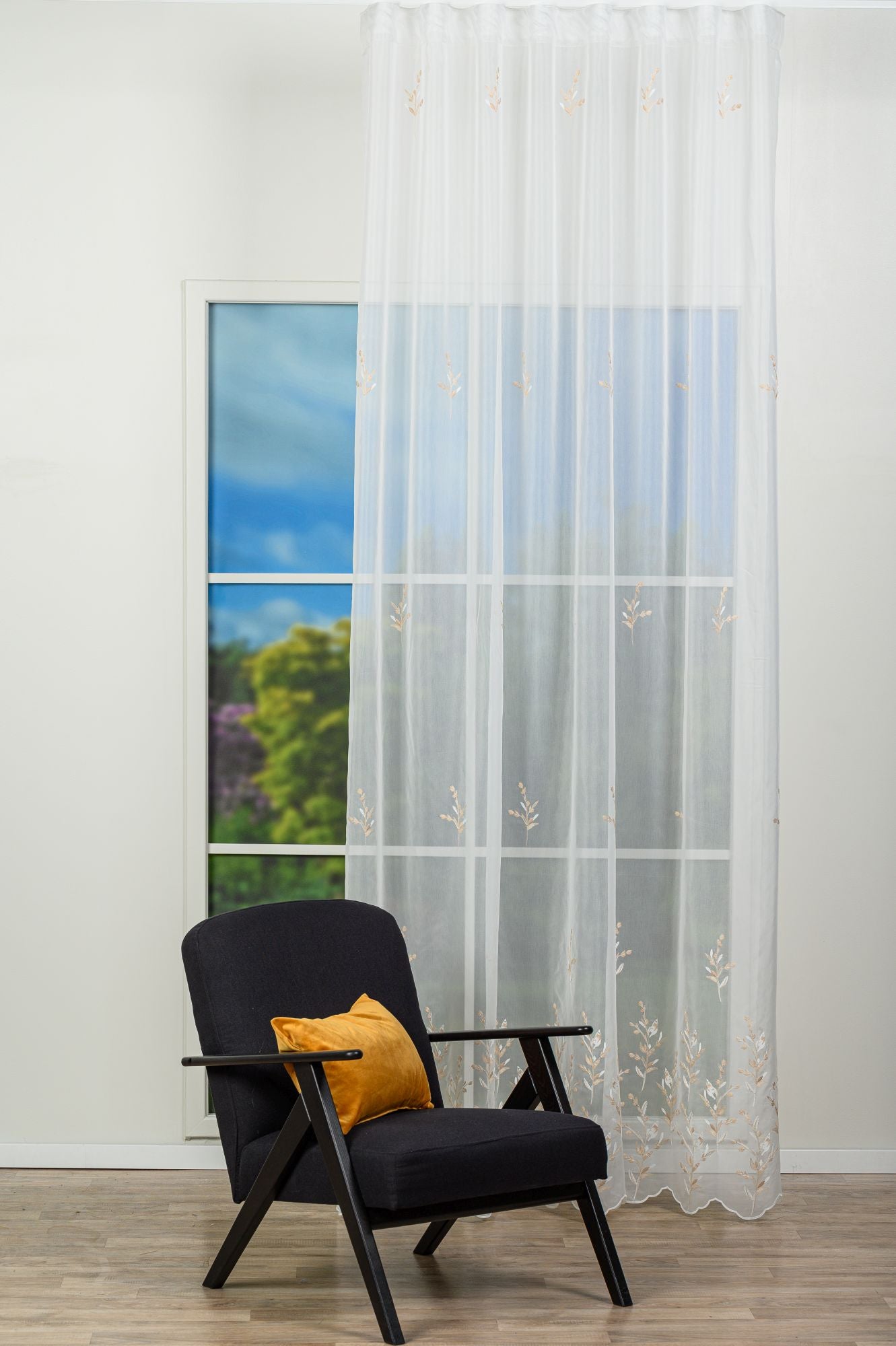 Perdea Venus P1099, crem, tull cu broderie model floral